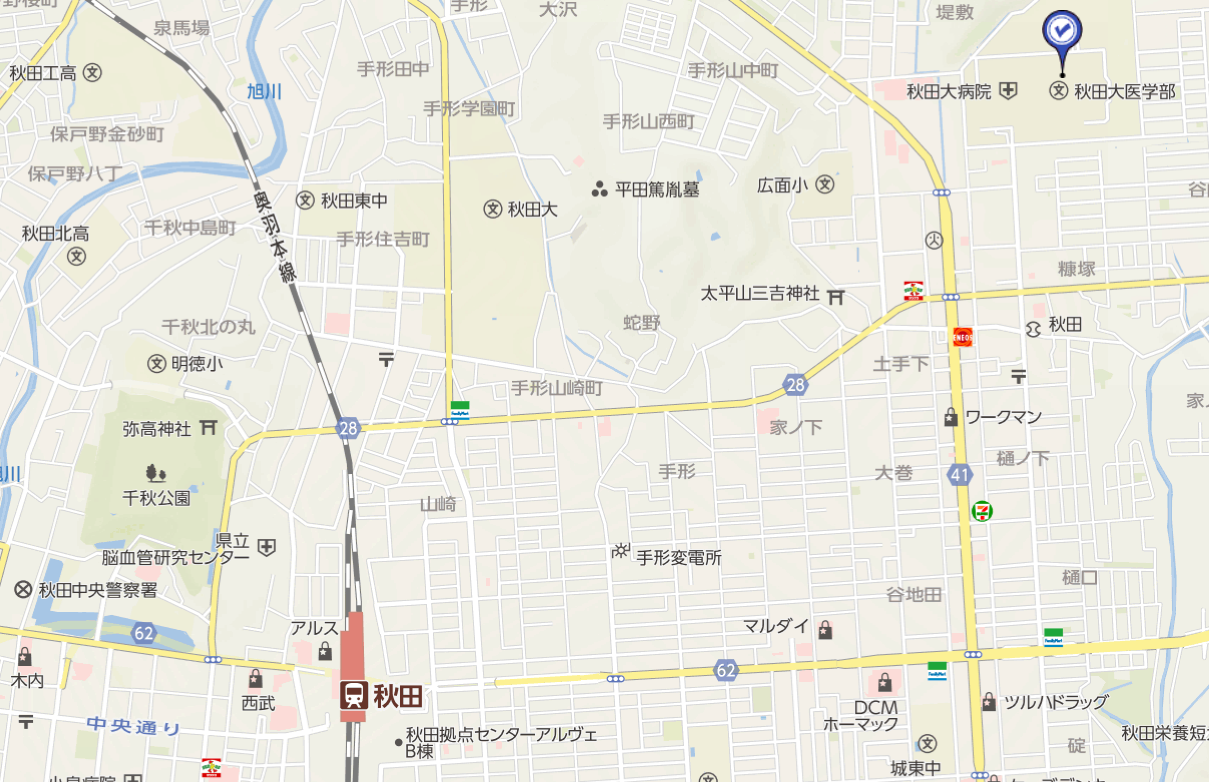 周辺地図 秋田大学 バイオサイエンス教育・研究サポートセンター 動物実験部門 所在地 〒010-8543 秋田県秋田市本道一丁目1-1 秋田大学 バイオサイエンス教育・研究サポートセンター 動物実験部門 TEL 018-884-6193(代表) FAX 018-836-2626 E-mail animal@med.akita-u.ac.jp