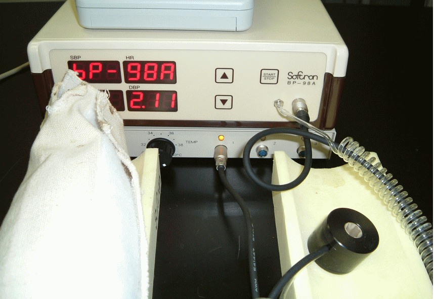 | 【設置場所】 クリーンマウス実験室 【機種名】 SOFTRON BP98A(Softron社製) 【用途】 実験小動物(マウス、ラット)の血圧測定ができる。 【使用方法】 取り扱い説明書を参照 【使用上の注意】 カフのゴムの劣化を防ぐため、装置使用後はプローブごとビニール袋に入れ保存してください。 【利用料金】 260円/回 |