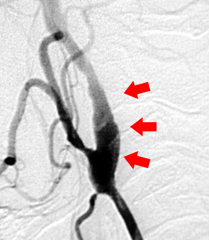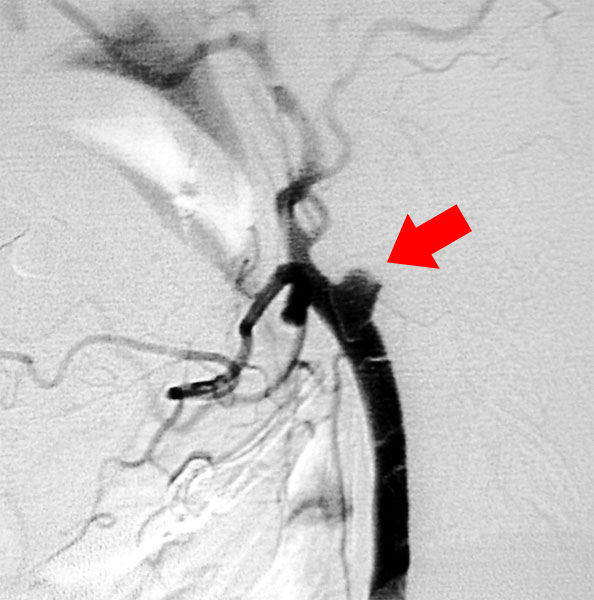 さて当科では脳梗塞予防手術を積極的に行っています。最近食生活の欧米化で内頚動脈起始部狭窄症が増加しています。この病気に対しては外科的治療と血管内治療がありますが、当科では主に外科的治療によって内頚動脈の厚くなった内膜を剥離して血管を広げ、脳梗塞を予防しています(図9、10)。
