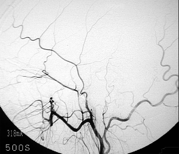 脳動静脈奇形は先天性の血管奇形のひとつで脳出血や痙攣発作の原因となります。最も基本的な治療法は手術による全摘出ですが、大きさ、発生場所等によっては放射線治療が選択される場合もあります。