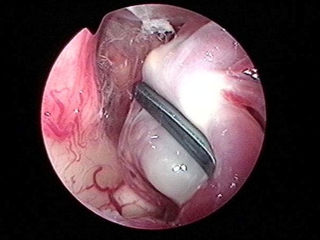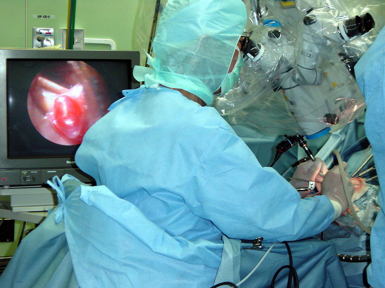 神経内視鏡による同時観察下で顕微鏡手術(図4)。