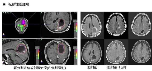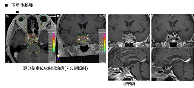 脳神経などの重要な構造物や重要な部位を含む場合は寡分割照射での治療を行っています。