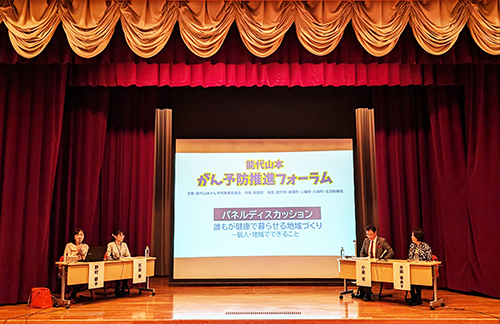 能代山本地区のがん検診の現状について岩倉助教が、個人の行動変容と健康管理について鄭助教が、パネルディスカッションで野村教授が登壇しました。