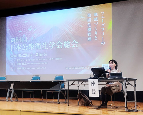 この他にも野村恭子教授は「自治体の自殺対策の有効的な取り組み」のシンポジウム企画に加わり、厚生労働省公衆衛生医師確保に係るインターンシップ班の自由集会へ参画しました。