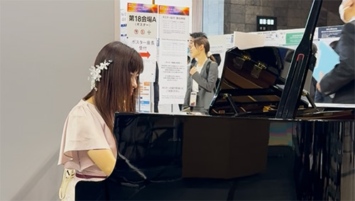 研究員の森川梢さんが、ミニピアノコンサートを学会会場で開催し、自作の楽曲を披露し大盛況でした。ご主人とお母様が名古屋から応援に駆け付けました。