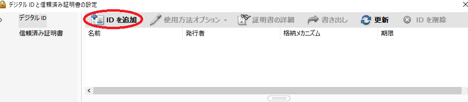 ここでは新規のデジタルIDを作成するので「IDを追加」をクリック