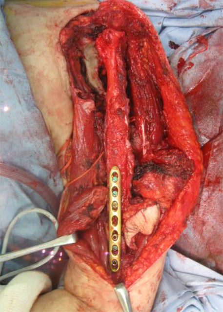下腿にある腓骨と呼ばれる長管骨を採取し、移植します。骨と同時に皮膚も移植することができるため、骨欠損と軟部組織欠損を同時に治療することが可能です。また、血流のある骨移植であるため感染に対しても強く、感染性偽関節症例にも適応されます。