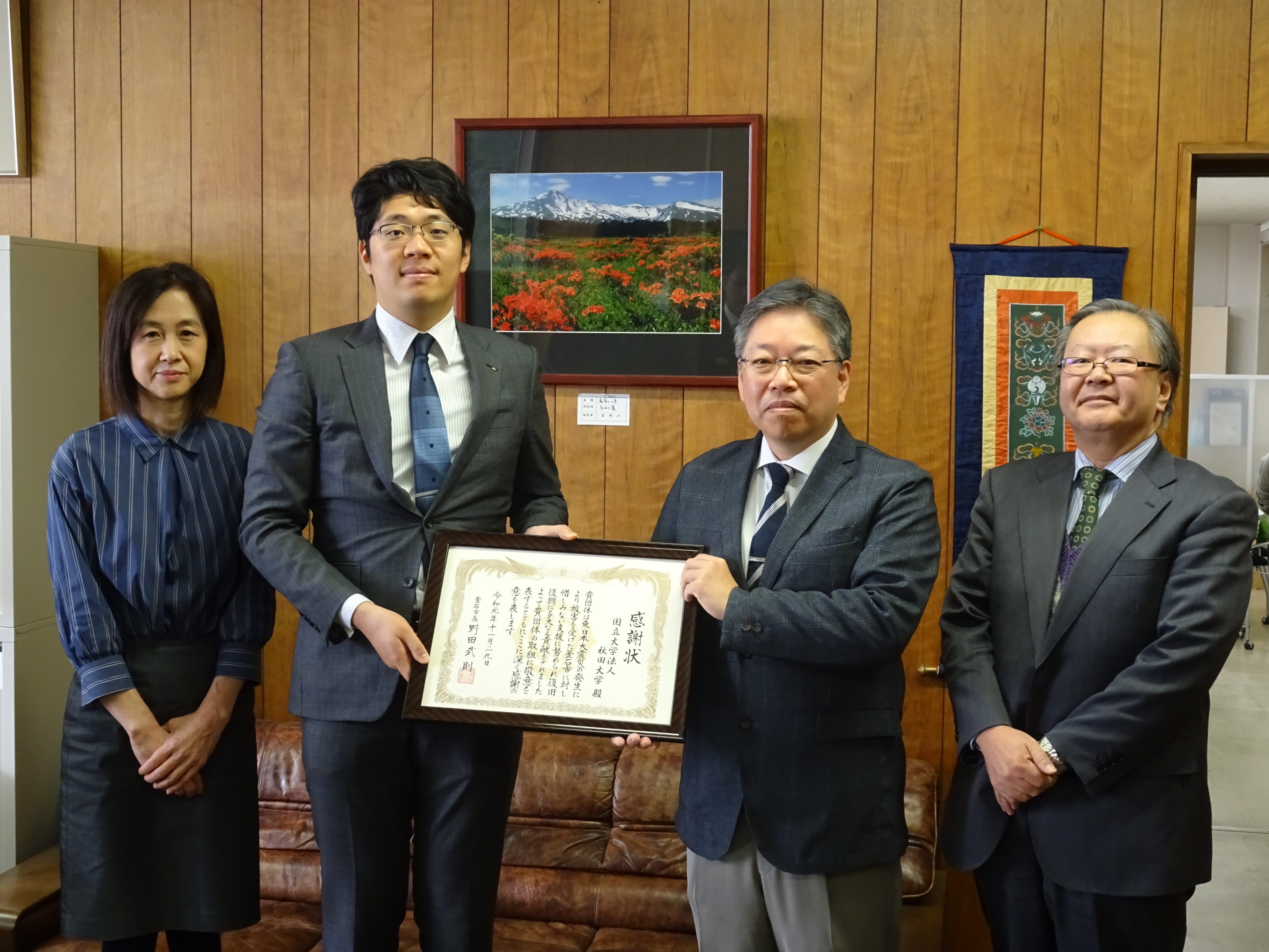 11月29日、釜石市の窪田副市長から安藤保健学専攻長へ感謝の言葉と共に、感謝状が贈呈されました。