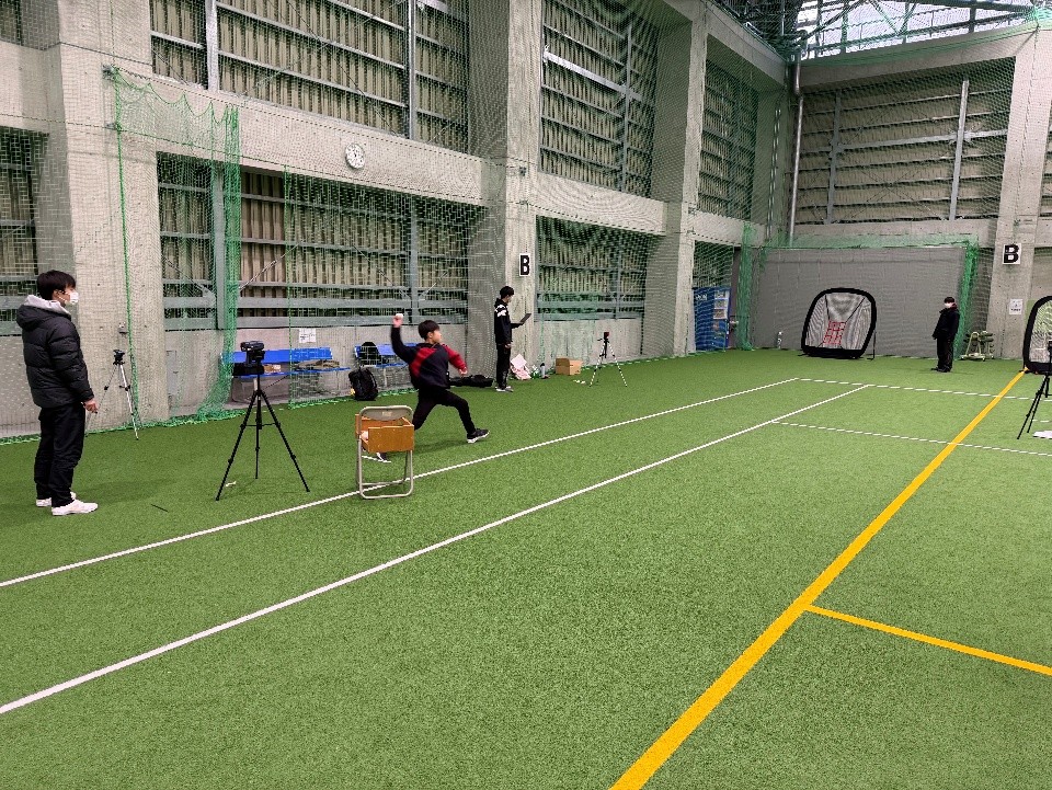 参加者は大学院医学系研究科保健学専攻の本郷道生教授、齊藤明准教授、照井佳乃助教、菊地翼助教、整形外科学講座の木村竜太先生、大学院生等(14名)、保健学科作業療法学専攻の学生(1名)らが運営する11のブースを順番に周り、超音波による肘の障害の有無の確認、骨の発達状況、靭帯や筋肉の状態、筋力や関節角度、柔軟性などを計測し、現在の身体の状態を確認しました。またプロチームでも使用されているスピードガンを使用して球速測定、スイングスピードの測定を行いました。さらにハイスピードカメラを用いた投球フォームのチェック・指導、予防のためのストレッチ指導も実施しました。