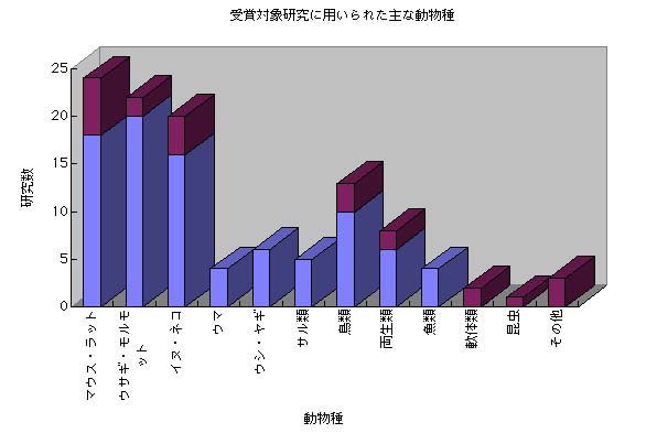 | 1997 | プルシナー(アメリカ) | プリオン - 感染症の新たな生物学的原理 - の発見(ヒツジ、マウス、ハムスター、すべての動物) |