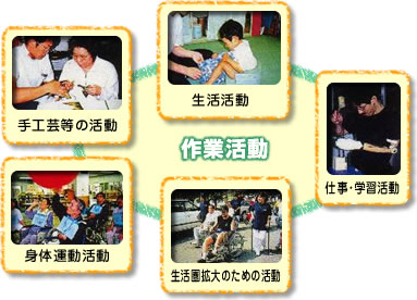 日常生活の諸活動や仕事、遊びなど人間に関わるすべての諸活動を「作業活動」と呼び、治療や援助もしくは始動の手段としています。
