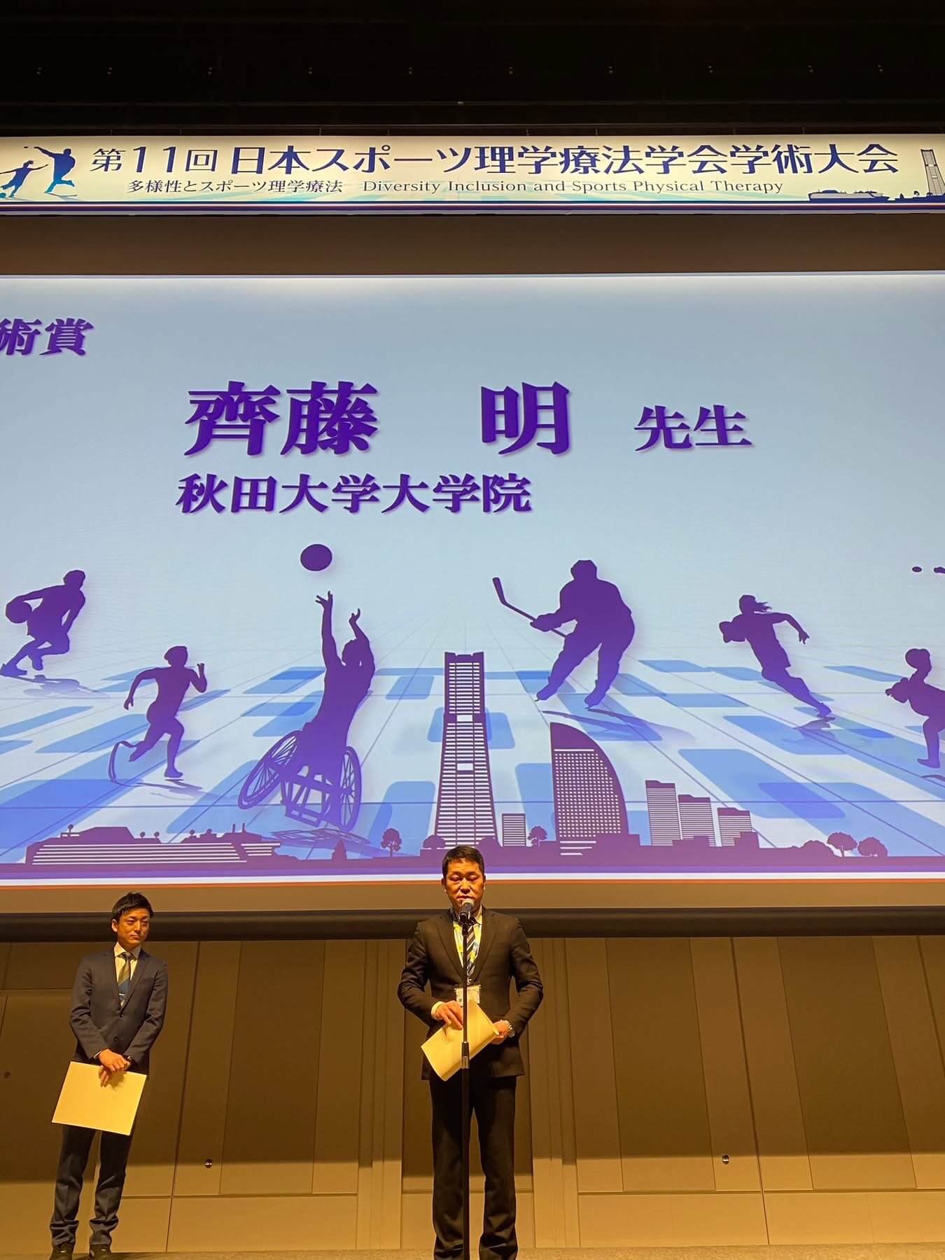 保健学専攻理学療法学講座の齊藤明准教授が、令和7年1月25・26日に横浜市で開催された第11回日本スポーツ理学療法学会学術大会において、2023年度日本スポーツ理学療法学会学術賞を受賞しました。