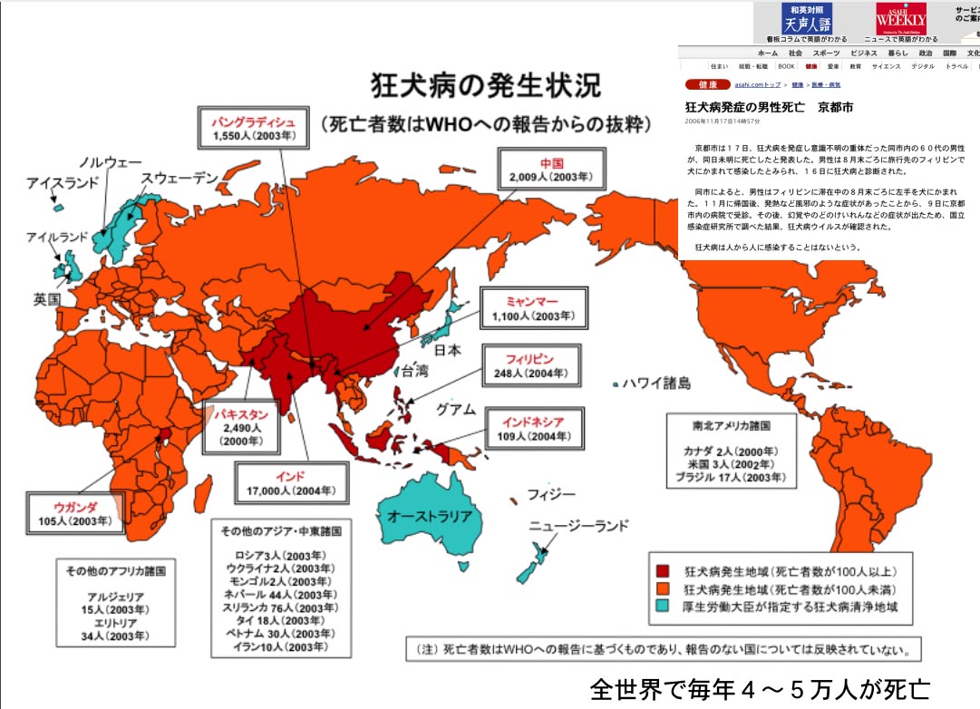 発展途上国ではイヌや吸血コウモリ