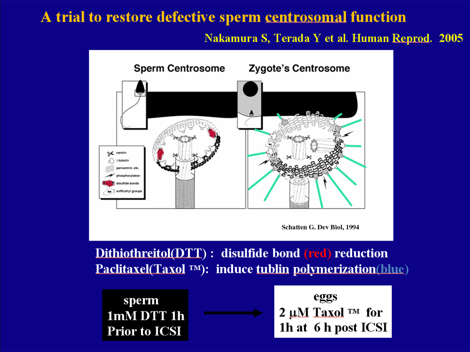 - Nakamura S, Terada Y, Rawe VY, Uehara S, Morito Y, Yoshimoto T, Tachibana M Murakami T, Yaegashi N, Okamura K. A Trial to Restore Defective Human Sperm Centrosomal Function. Human Reprod 2005 20:1933-1937.