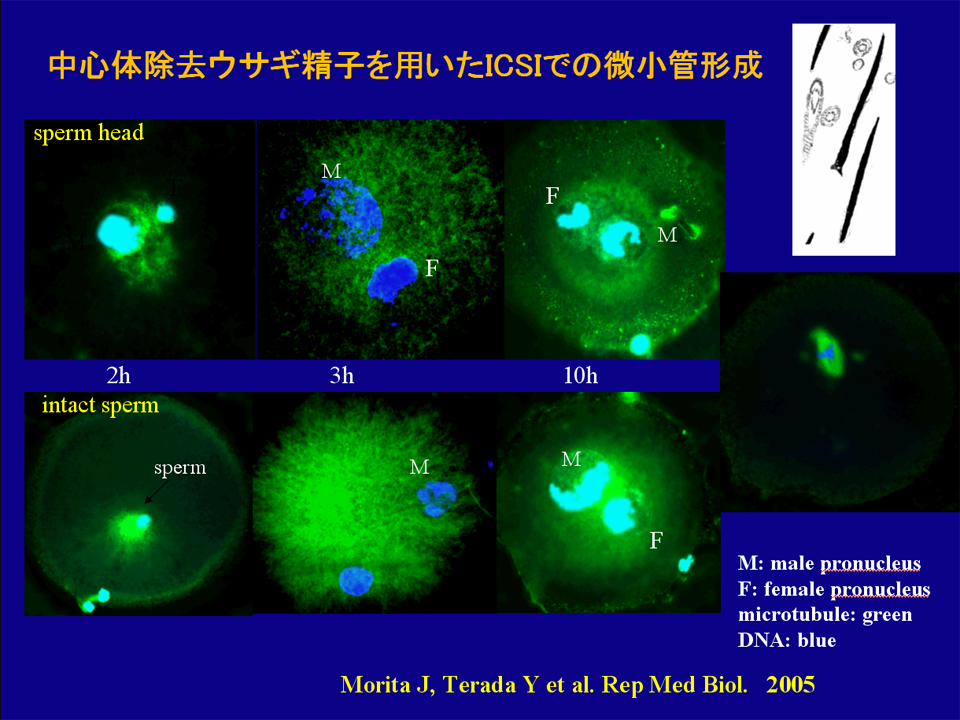 - Morita J, Terada Y, Hosoi Y , Fujinami N, Sugimoto M, Nakamura S, Murakami T, Yaegashi N, Okamura K Microtubule organization during rabbit fertilization by intracytoplasmic sperm injection with and without sperm centrosome. Rep Med Biol 2005 4:169-177.