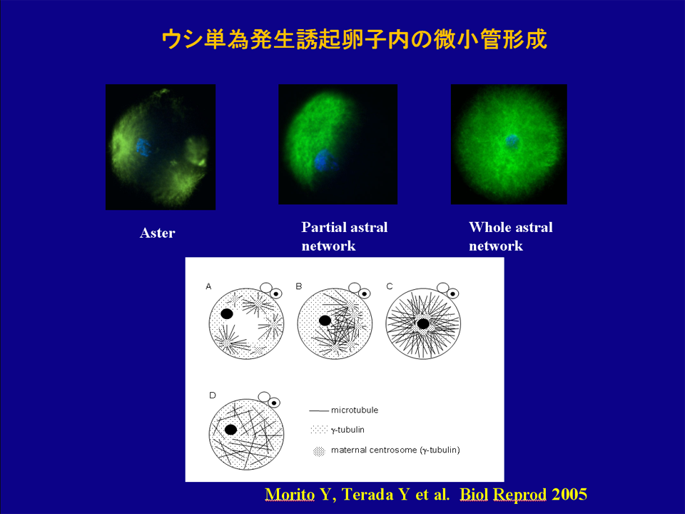 (平成18年日本生殖医学会学術奨励賞受賞論文) - Morito Y, Terada Y, Nakamura S, Morita J, Yoshimoto T, Murakami T,YaegashiN,Okamura K. Dynamics of Microtubules and Positioning of Female Pronucleus during Bovine Parthenogenesis. Biol Reprod 2005 73:935-41.