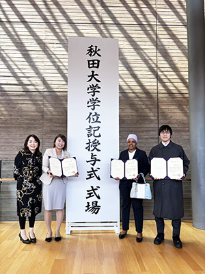 太田さんと清水さん 秋田大学奨励賞 【NEW!】医学部6年生の太田奈歩さんと清水紀翔さんが秋田大学奨励賞を受賞 医学部6年生の太田奈歩さんと清水紀翔さん 秋田大学奨励賞を受賞しました! 二人は医学部2年生から6年生まで公衆衛生学講座に在籍し、数々の学会発表や論文を発表しました。おめでとうございます! → 学生の活躍のページへ 2026年4月6日 update 修士2名 博士3名 新たに誕生 【NEW!】ご卒業おめでとうございます! ・修士Milliet Kupfuwa さん後藤豊美さん ・博士岩澤敦史さん竹之下千尋さん野尻恵資さん それぞれの道で、秋田で学んだことを活かして大きく羽ばたいてください。 → メンバーのページへ 2026年4月6日 update 大関千潤さん 論文掲載 【NEW!】研修医2年目 大関千潤さん 大関千潤さんの論文が Menopause に掲載されました!おめでとうございます。 → 学生の活躍のページへ 2026年4月6日 update 日本衛生学会 当講座より発表 【NEW!】野村教授、鄭助教、富永助教 日本衛生学会にて、野村教授が大迫研究の生殖因子と脳容積を、鄭先生が仙北市の高齢者デジタルデバイドの健康について、富永先生が雪印メグミルクとの協働研究を発表を行いました。 → 業績のページへ 2026年4月6日 update 感染制御総合センターシンポジウム 当講座より鄭助教が登壇 令和7年度 秋田大学大学院医学系研究科附属 感染制御総合センターシンポジウム「知とのつながりで築く平時の備え―感染症に強い秋田をめざして―」が1月10日秋田大学にて開催されました。 当講座より鄭松伊助教が「感染流行時の閉じこもりのメンタルヘルス 現在とこれから」と題して発表しました。 また、パネルディスカッションも行われ、感染疫学部門長である野村恭子教授が当講座よりパネリストとして参加しました。 → シンポジウム詳細 2026年01月19日 update オンラインシンポジウム 開催 メンタルヘルス・自殺対策シンポジウム 1月30日~31日 野村教授、秋田大学の学生メンタルヘルス・自殺対策を発表 どなたでも、無料でオンライン参加可能です。奮ってご参加ください。 → PDF(申込QRコードはこちら) 大学共同利用機関法人 情報・システム研究機構 統計数理研究所の2025年度共同研究集会「自殺対策基本法20周年に向けて:学際的検討と現場の経験を踏まえての政策提言」は1/30(金)10:00-17:00、1/31(土)9:00-16:00の2日間、ハイブリッド開催です。参加は無料ですが、申し込みが必要です(上のリンク内QRコードよりどうぞ)。 2026年01月06日 update 大学院生 竹之下千尋さん 論文掲載 BMC Women’s Health 博士課程大学院生 竹之下千尋さんの論文 Development and validation of a premenstrual symptom screening tool for working women in relation to absenteeism が BMC Women’s Health に掲載されました!おめでとうございます! → 学生の活躍のページへ 2026年01月09日 update 大学院生 野尻恵資さん 論文掲載 Current Development in Nutrition 博士課程大学院生 野尻恵資さんの論文 Human Milk Macronutrient and Energy Contents Are Associated with Maternal and Infant Factors: A Cross-Sectional Analysis of Data from the Japanese Human Milk Study Cohort が Current Development in Nutrition に掲載されました!おめでとうございます! → 学生の活躍のページへ 2026年01月09日 update Milliet Kupfwaさん 論文掲載 秋田県公衆衛生学雑誌 修士課程大学院生Milliet Kupfwaさんの論文「高塩分摂取に関連する要因:秋田県在住者を対象とした横断研究 Factors associated with high salt consumption:A cross-sectional study among residents of Akita Prefecture」が秋田県公衆衛生学雑誌に掲載されました!おめでとうございます! → 学生の活躍のページへ 2026年01月09日 update AMEDセミナー 開催決定 TKP小倉シティセンター KOKURAホールにて 「働く人のためのヘルスケアサービスを選ぶワークショップ ~”感覚”から”科学”へ、医学会発指針で見極める~」として対面型のセミナーの開催が決定しました。 『「働く女性の健康指針」の概要及び活用方法について』と題して当講座 野村恭子 教授が基調講演を行います。 開催日時は 2026年1月29日13:00-16:00(予定)、12:30 受付開始、参加は無料ですが参加登録が必要です。 → 国立研究開発法人 日本医療研究開発機構のページへ(リンク先の下の方より参加登録できます) 2025年12月19日 update 社会医学専門医プログラム 認定 秋田大学大学院研修型プログラム 社会医学専門医プログラムとして「秋田大学大学院研修型プログラム」が一般社団法人 社会医学系専門医協会より2025年11月18日付で認定されました。 → 一般社団法人 社会医学系専門医協会のページへ 医学博士と、産業医と、社会医学専門医の3つが同時に取得できます! 秋田県内居住で実習や講習会に参加ができることが条件となります。 2025年12月19日 update 大学院生 マリーナさん 奨励賞受賞 第36回外国人による日本語スピーチコンテスト 秋田ユネスコ協会主催 2025年11月16日、秋田市にて「第36回 外国人による日本語スピーチコンテスト&世界と語ろう!ユネスコタイム」が開催され、当講座の大学院生 Marina Israel さんが奨励賞を受賞しました。おめでとうございま
